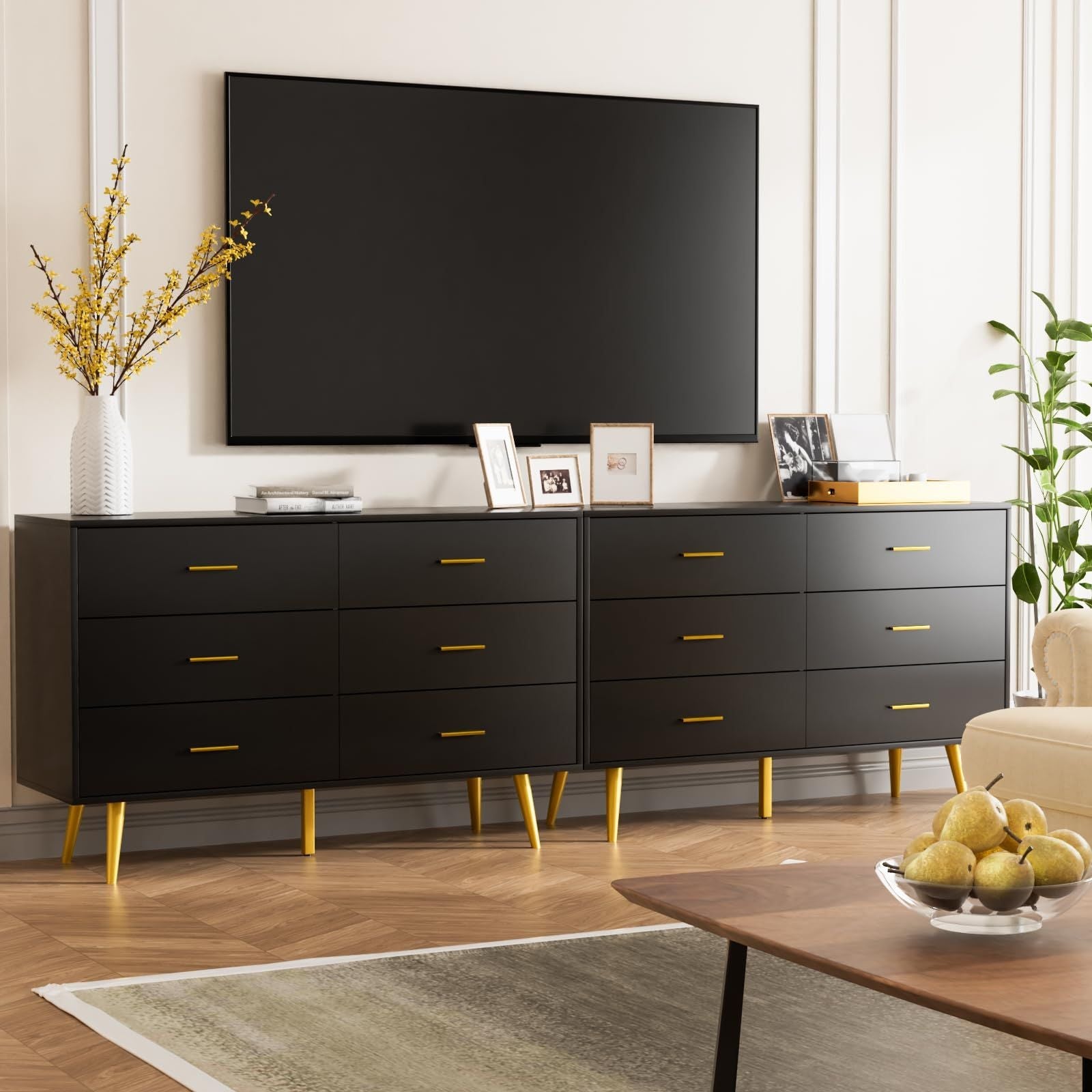 Tile Black Moderna Nightstand w/ Gold Finish by Rema Home